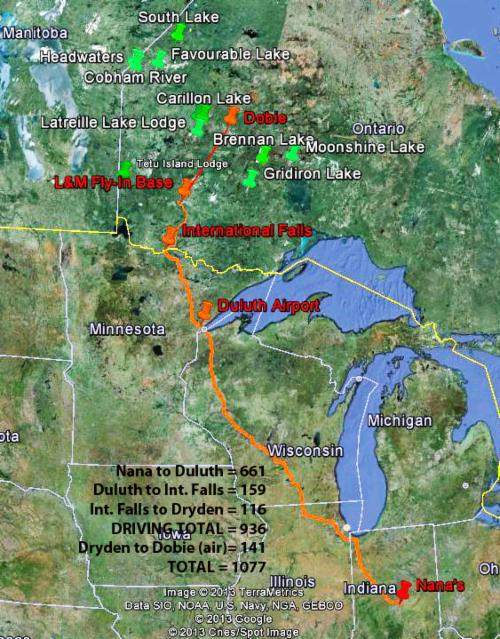 Final cleaning and packing before plane arrived at 6:50am. Son with father and father-in-law arrived to take over the camp. Beautiful start to the day, but who knows what the day turned out to be at Dobie. Final NLFC meeting declared Reece Rookie of the Year! We headed for Dryden at 7:40am and we were greeted by Mary at 8:50am. We loaded the cars and gathered some souvenirs and hit the road to IF at 9:30am with unremarkable border crossing at noon. Lunch at Subway and on to Duluth. Tried to drop off some things at the airport but denied and on to the Best Western before good-byes to John and the Indy cars. James scrambled to package and mail some of his things and then the boys took a hike with me and James to the Canal walk. We dined at Pizza Luce after being turned away at Fitzgers. John made it to Chicago as the Indy cars made the final jaunt home.