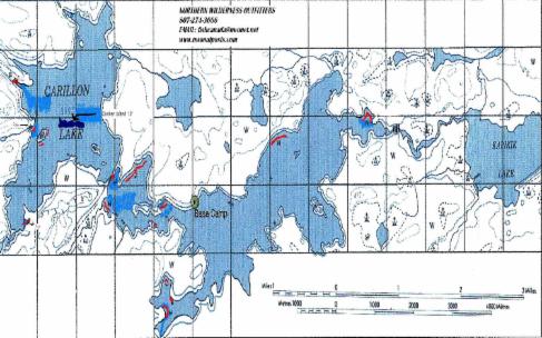 Seems that Neil has struck up an online bromance with an angler who has fished this water before. Jerry has generously sent us a map with most of the spots we should avoid fishing carefully marked. (click here for larger, printable map) Text of some of Neil's correspondence with Jerry is located on our blog. Jerry and his group will be flying out of Ft Frances on the same day as us, so we may have an opportunity to meet them and swap lies.