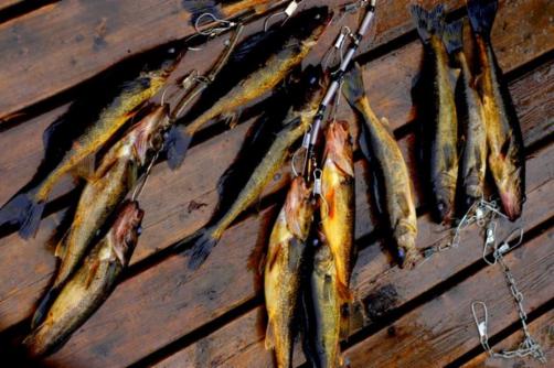 Another hugely successful trip added to the list. The fishing was not the best compared to the last few trips, but most of that is probably due to the weather. There are plenty of fish in this water, and there are LOTS of spots that should hold fish on this lake. We had cold fronts followed by record cold temperatures, followed by 25 mph winds and sideways rain. The fish were scattered throughout the lake. We were able to catch fish in spots where you would expect them to be in given conditions and time of year, but also found fish in spots where they had no business being at this time of the year. Seems like they were as confused by the weather as us. Very few big fish were caught with most of the walleye in the 14-18 inch range, and the Northern were even tinier with no fish over 30". It took a lot of work, but we wound up with 350 walleye total for the trip, plenty to eat but never more than 20 by anyone in one day.