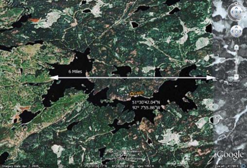 Fun fact: a direct flight path from Ft. Frances and Carillon will take us directly over Latreille and Margaret lakes which are only 25 miles southwest of Carillon. Brownstone Lake (our 2001 trip) is just 8 miles west, and flows directly into Carillon. Raiding party anyone? If there are any Google Earth users out there, the cabin at Carillon Lake is located at: