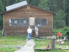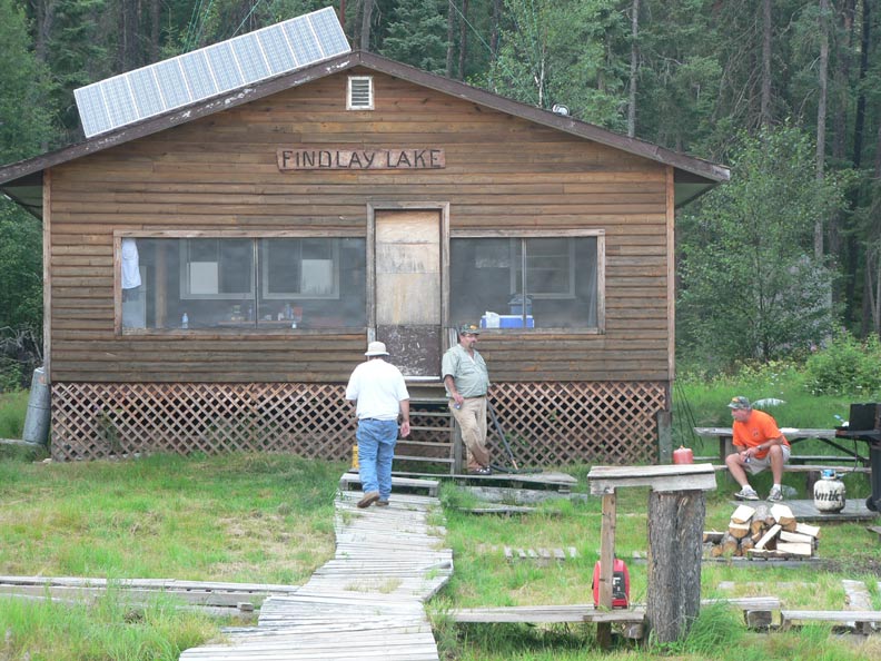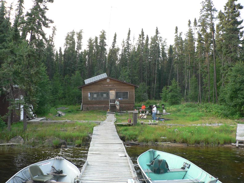 The Camp at Findlay is pretty typical of Way North with minimal time for annual maintenance, everything begins to tilt a little, some things tilt a little more than a little. This camp though has an interesting new feature - the lawn is covered with old pallets. This probably means less mowing and does give us some lumber for some of our later camp modifications/upgrades. As a nice bonus, the raspberries and blueberries that surround camp are ripening if a bit sparse, but provide two breakfasts of wild berry pancakes.