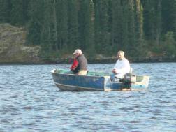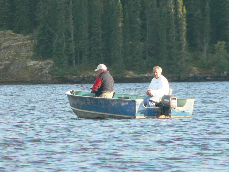 Stan mentions daily how much he misses his girls back home (Stan, I hope I mentioned this enough times to earn you bonus points for next year), and in the next breath can't believe that he has waited so long to join us on the trip. Jimlets take down another rookie - all Jim wants is a cup of ice, but the rookies perform like veterans on fish gut duty, in camp and on the water (ok, maybe not so much on fish gut duty, but it was good nightly entertainment for both the gulls and eagles and the rest of us). July 25-29 Fish Everywhere Not a Single Mosquito: And so it goes for the next 5 days. Lots of fish, pretty much everywhere we expect them to be. Lots of submerged reefs in this lake, and all the points with wind are holding fish. Pretty easy to catch 100 fish per boat daily, but we did lots of moving from spot to spot just to keep from getting bored. Stan gets the big walleye at 26, and everyone gets plenty of 20 plus. We wind up eating mostly 18's, which is the maximum size we can keep - everything bigger gets put back. Not much to mention on Northern, but we really dont put that much effort into it. We need Orvis to fling the heavy artillery for the big pike. We estimate at least 1500 total fish and that seems a little light.