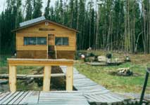 July 24 Fly-In day: Andy and Jack have typical Hoosier confusion over time zone changes and are up and dressed and out the door in total darkness. Where is everyone? supposed to be ready by 4. No lights in any other rooms, turn on the TV, it is 3 am... back into bed for short nap. Up again at 4am, Stan and Clayton waiting. Bob and Jim rousted out of their Makers induced coma and off to base camp. Plane is already loaded up and we board and are airborne by 5:30. Uneventful flight in - clear skies, smooth flight, perfect landing which is a blessing because the passenger next to me is clutching his barf bag pretty tightly on take off. Quick exchange of gear with the outbound group of 2 guys and their wives(?) and camp is ours by 7:30.